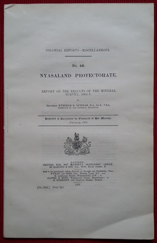 Colonial Reports - Miscellaneous No. 48.; Paper wrappers; British Parliamentary Paper Cd.3916.; Collation complete - 35 pages; A clean copy.