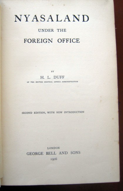 xxxii,422p, frontispiece, 16 plates, fold-out map at rear. Red decorative cloth boards, gilt lettering. Some foxing. History of Nyasaland, Harry Johnston's administration, game, flora and fauna, tribal organisation, native life and religion.