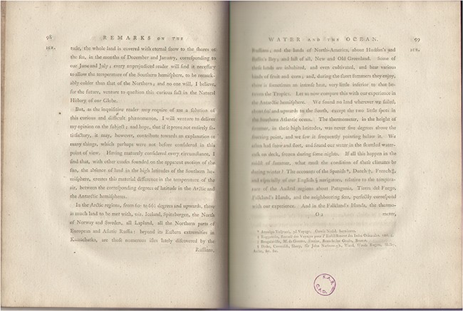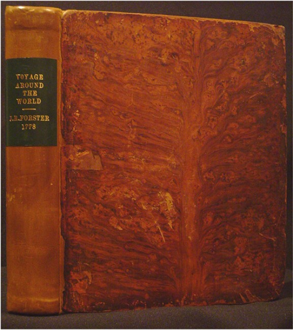 (iv), iii, (i), 9 - 649, (i errata), (i list of subscribers) pages, folding Comparative Table of the Various Languages in the Isles of the South-Sea, lacks the folding map of Polynesia, contemporary tree calf rebacked, corners worn, some foxing on the title page which is repeated lightly on the following dedication page, the occasional spot of foxing in the text, ex-library copy with a cancelled stamp on the verso of the dedication page and a smaller stamp at the foot of three text pages.