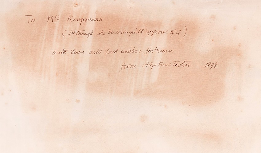 Presentation inscription on the front free end paper reads: To Mrs Koopman, (Although she does not quite approve of it) With love and best wishes for Xmas from Alys Fane Trotter, 1898