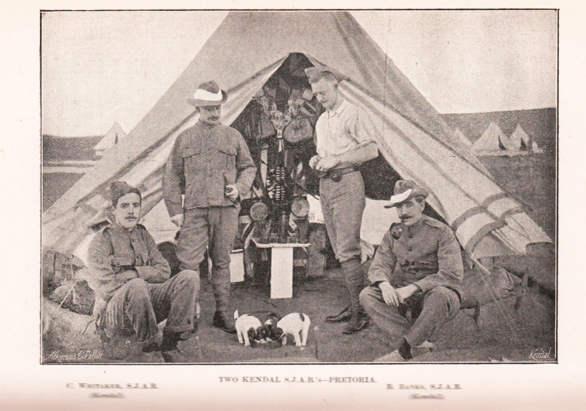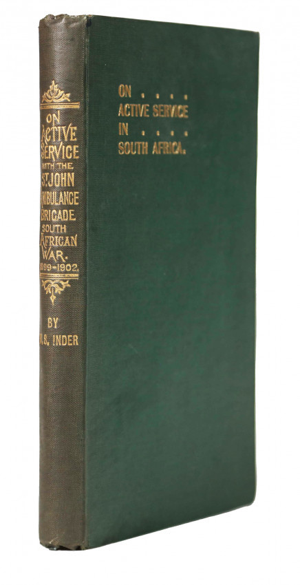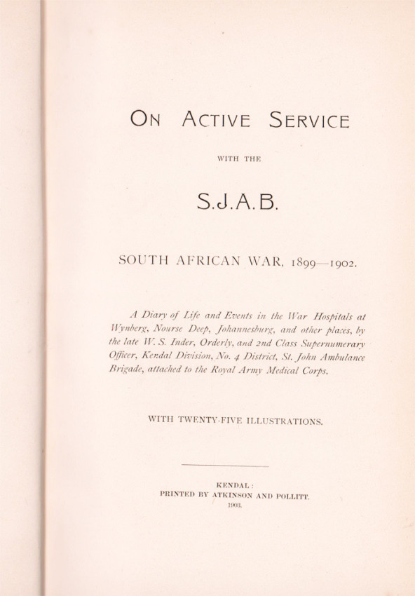 Hackett (R.G.) South African War Books page v, ‘A campaign diary from November 1899 to December 1901 relating the author’s experiences in the Royal Army Medical Corps and the Imperial Military Railways. Inder, a member of the St. John Ambulance Brigade, was employed at military hospitals near Cape Town and at Johannesburg. He describes fully the routine at the establishments and comments briefly on the prevailing war situation. In June 1901 he resigned the hospital service to join the staff of the Imperial Military Railways. He was engaged at Johannesburg but later moved to Bloemfontein. In the course of his duties in the Orange River Colony he was taken ill and died at Bloemfontein in January 1902. An active service roll of the Kendal Division S.J.A.B.is appended.’
