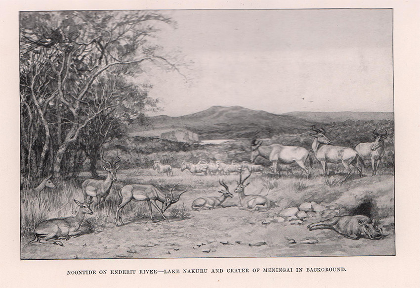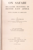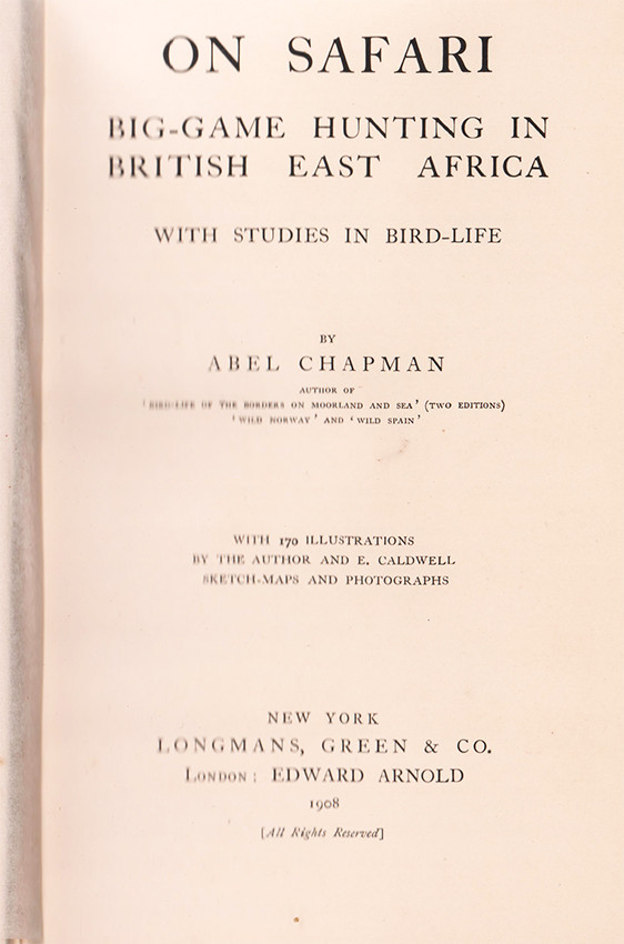 Czech (Dr. Kenneth) An Annotated Bibliography of African Big Game Hunting Books 1785 – 1999, pages 59 -60: A prolific sporting author, Chapman combined fluid writing style with his exciting experiences hunting in British East Africa. He followed the Uganda Railway, with hunting excursions toward Lake Elementeita and also westward to the Enderit River and along Lake Nakuru. On a 1904 hunt, Chapman describes his trek across the Athi Plains. There are plentiful hunting experiences, including lion, waterbuck, rhino, elephant, gazelle, eland, kudu, and buffalo. The illustrations are plentiful and come from photographs and the talented pen of Edmund Caldwell.