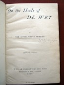 118p. Inscription on ffep. Maroon leather boards, raised bands, gilt lettering to spine. Marbled endpapers. Some damage to back board. Diary kept during the Anglo-Boer War, originally published in Blackwood's magazine.