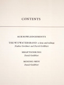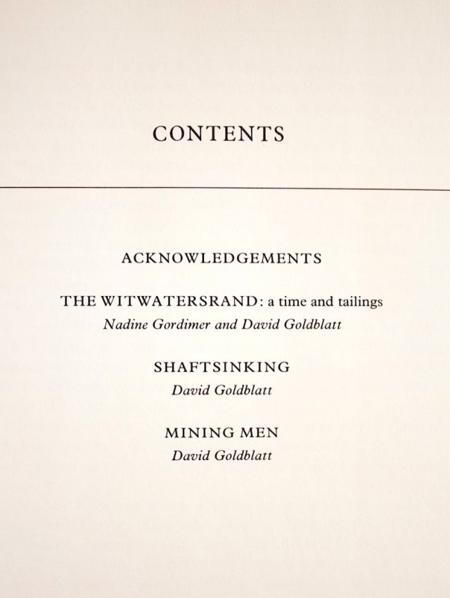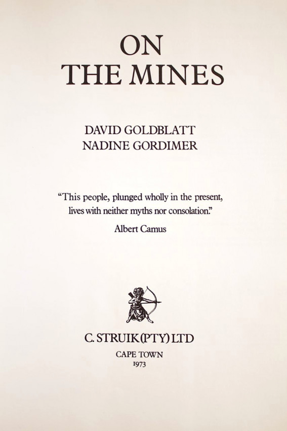 Introductory text by SA author and Nobel laureate Nadine Gordimer. Black & white photographs of mining men, the shaft sinking process, and of scenes in and around the mining grounds of the Witwatersrand. David Goldblatt was the winner of the prestigious Hasselblad Photography award in 2006.