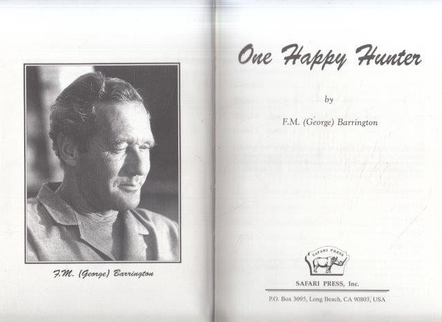 Volume Fifteen in Safari Press's Classics in African Hunting Series. As a professional hunter with Ker & Downey, the author hunted the length and breadth of East Africa during the 1950s and 1960s. Barrington was the professional who took out (among other notables) John H Batten. He also married Batten's daughter.