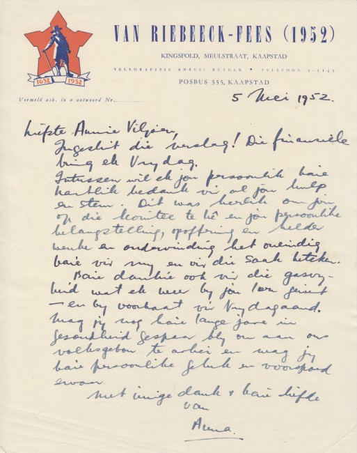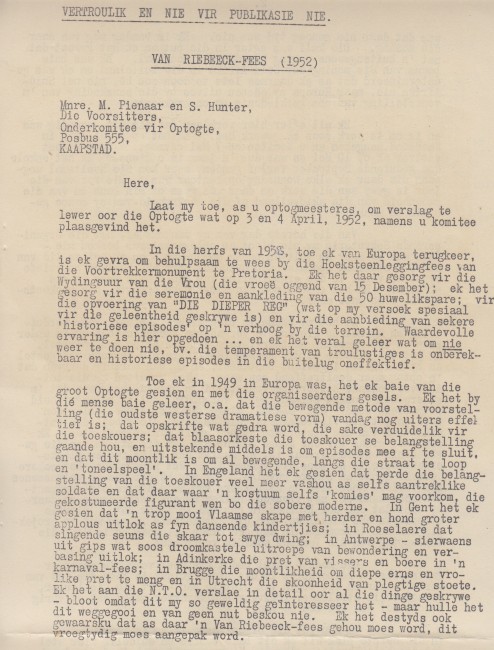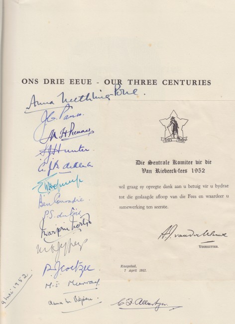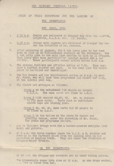 In addition to the book are 22 pages of typewritten instructions, stage directions and letters on the staging of the festival plus a hand written letter from Anna Neethling-Pohl.