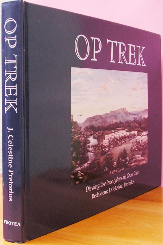 Die daaglikse lewe op trek word uitgebeeld soos Trekkers dit in dagboeke en herinneringskrifte opgeteken of vertel het, soos kunstenaars uit hulle tyd dit geteken of geskilder het en soos dit blyk uit die versameling voorwerpe in die Nasionale Kultuurhistoriese en Opelugmuseum wat aan Trekkers behoort het en in die Voortrekkermonumentmuseum besigtig kan word. Dit sluit in boeke, wapens, kledingstukke, gebruiksartikels, foto's end persoonlike besittings. OP TREK is geskryf deur navorsers van die Nasionale Kultuurhistoriese en Opelugmuseum wat 'n studie van hierdie versameling gemaak het."
