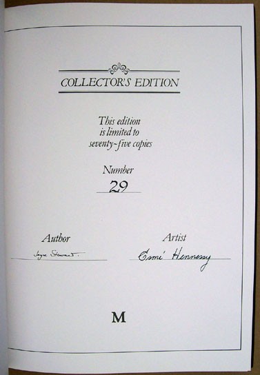 Copy number 29 of the Collector's Edition limited to 75 copies signed by the author and the artist.