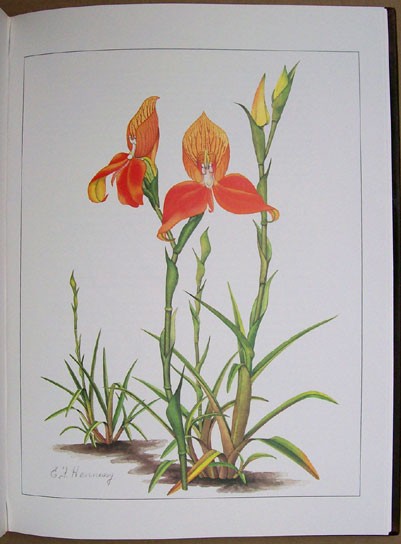 Housed in the original brown slip case. Full brown leather binding with gilt titling on the spine and the upper board. Decorated end papers. ix prelims followed by a sub title leaf, 159 pages, 51 full page plates including the frontispiece, 8 detailed black and white drawings of parts of the plants.