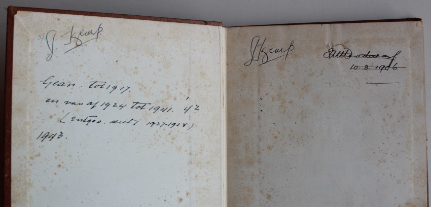 Brown cloth binding with lxxxix pages. Some names and inscriptions on front pages. In good condition but with some texts and passages on a few pages crossed out in ink (see picture)