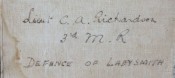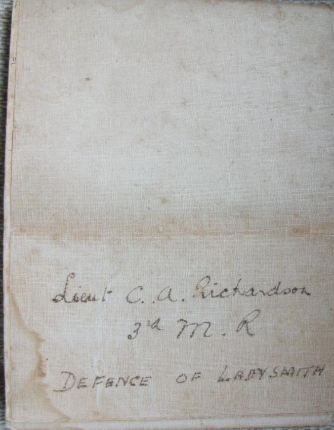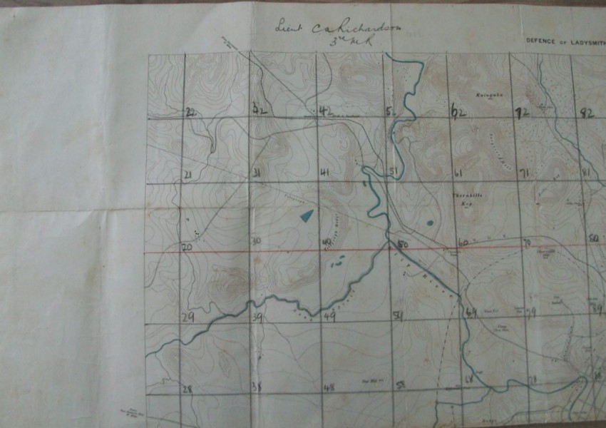 Back of map also marked. Lieut. C. A. Richardon. 3rd M.R. DEFENCE OF LADYSMITH.