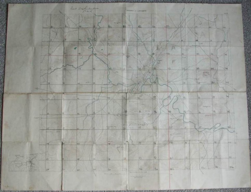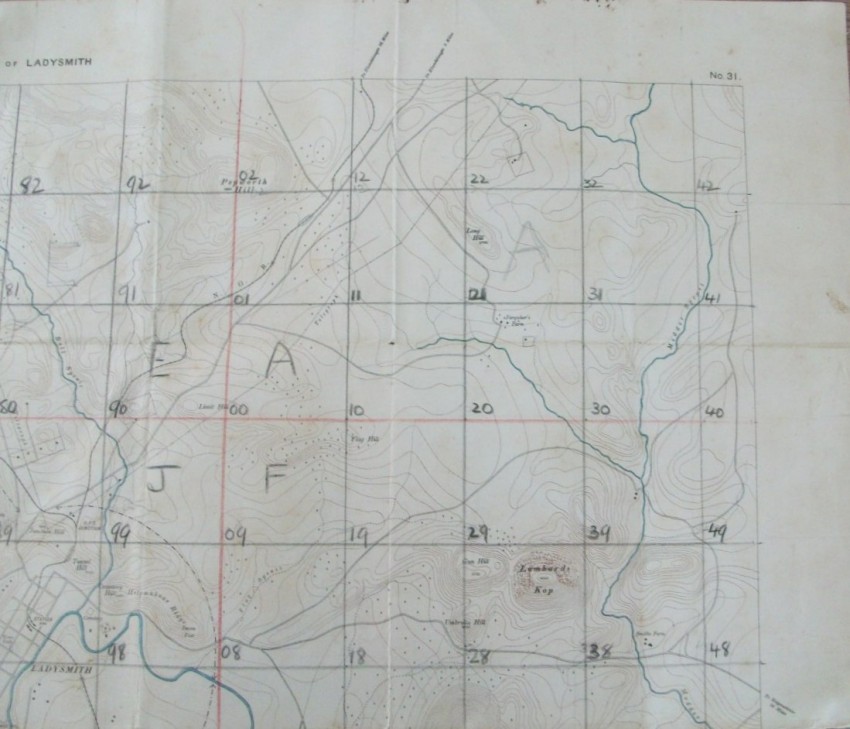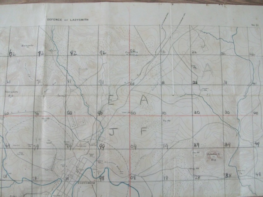 Defence of Ladysmith-Linen folded field map. No 31. With Lieut. C.A. Richardson- 3rd MR (signed)
