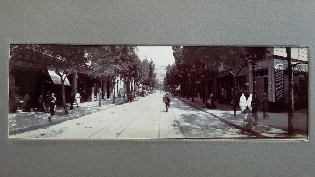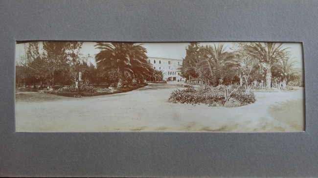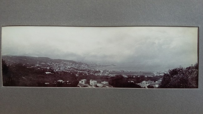 Kodak Panorama (cover title). Album with 26 (2 loosen) original panoramic photographs from Algiers and Tunisia. Vintage. Gelatin silver. London, 1910. 12 x 26.5 cm. Contemporary canvas cloth of the album.