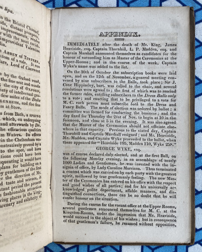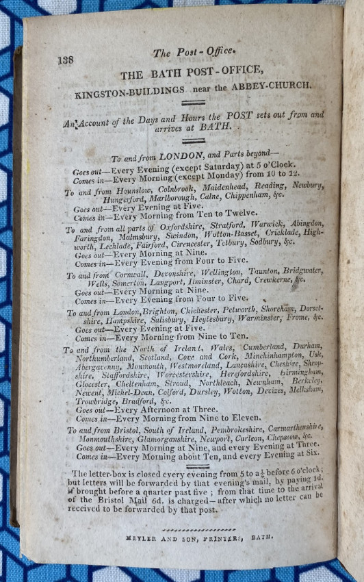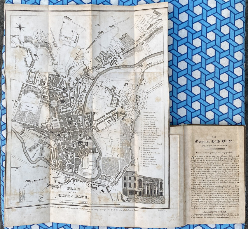 Detailed guide, in excellent condition, including incidental information which is often overlooked. A much-published work, this particular edition appeared in the same year as Jane Austen's posthumous work, Northanger Abbey: it is not too much of a stretch to imagine Catherine Morland consulting this work as she navigated the complicated social seas of polite Bath. The 'Bath Guide' appeared in a number of forms over many years, and had a long and quite complicated publication history. For example, the imprint in the present example concludes with a note that the Meylers ‘have purchased from the assignee of the representative of the late Mr. W. Taylor … his share of the above work; likewise the plans of Bath; and map of the five miles round the city.’