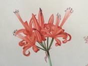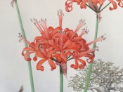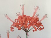 A striking image on vellum of the beautiful fall-flowering Nerine - a member of the Amaryllis family.