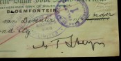 An original cheque of One Pound, made out to R. E. van Deventer and signed by the sixth and last president of the Orange Free State Republic, Marthinus Theunis Steyn (1857-1916). The President corrected the date on the cheque and initialed it as per images. The date is still unclear though but appears to have been signed at some point in February 1910.