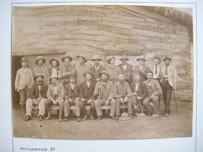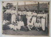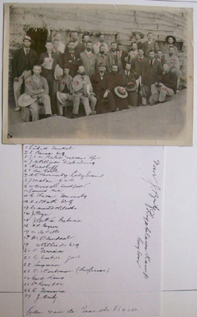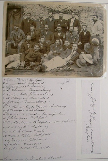 Please note that the images provided here are from a cheap \"point and click\" camera and are not as clear as the originals. All 5 items are mounted on album leaves in plastic protective sleeves. Item 1): Original photograph of 18 Boer P.O.W.\'s who took German classes at Diyatalawa Camp. The caption is a copy of the caption made by J. Britz. Item 2): Original photograph of 27 Boer P.O.W.\'s who took French classes at Diyatalawa Camp. The caption is a copy of the caption made by J.Britz. Item 3): The caption below this original photograph reads: \"Photographed by A.W. Andree Hopetown Studio Colombo\". Item 4): This group picture does not have the glossy surface of an original photograph. It also has no caption. Whatever is is, it is old. Item 5): This is an original document that came from the notice board at Diyatalawa Camp which instructs certain prisoners to sort post.