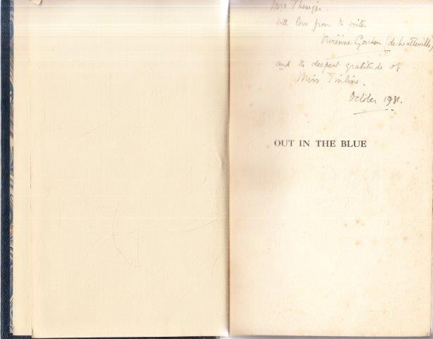 The book is signed and inscribed by the author to Mrs Thesiger.
