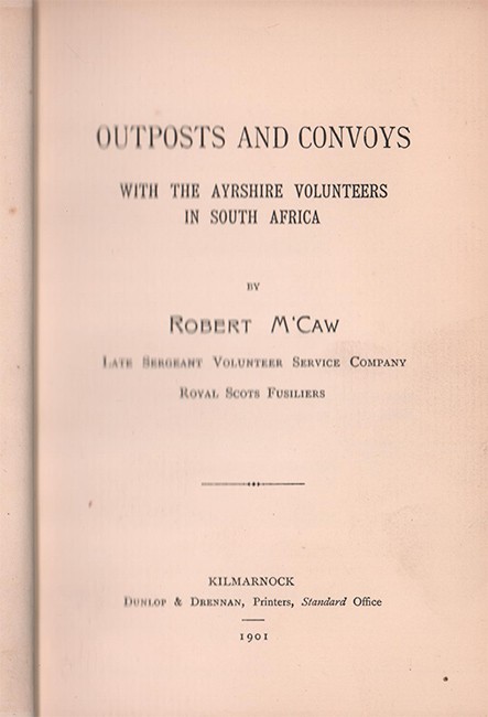 From the preface: This book is a record of the doings of the Volunteer Service Company of the Royal Scots Fusiliers, during the time they were attached to their Regiments in South Africa Kilmarnock, Dunlop and Drennen, 1901