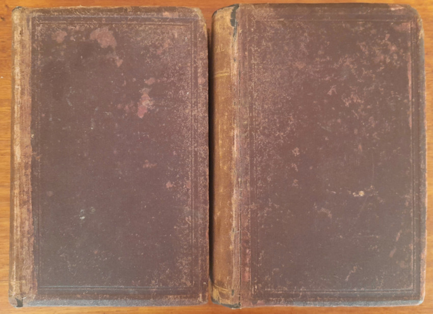 Covers restored with new end papers, small library stamps on spine, inscription on first title pages, ex-libris card in Vol ii, discolouration to boards, binding tight.