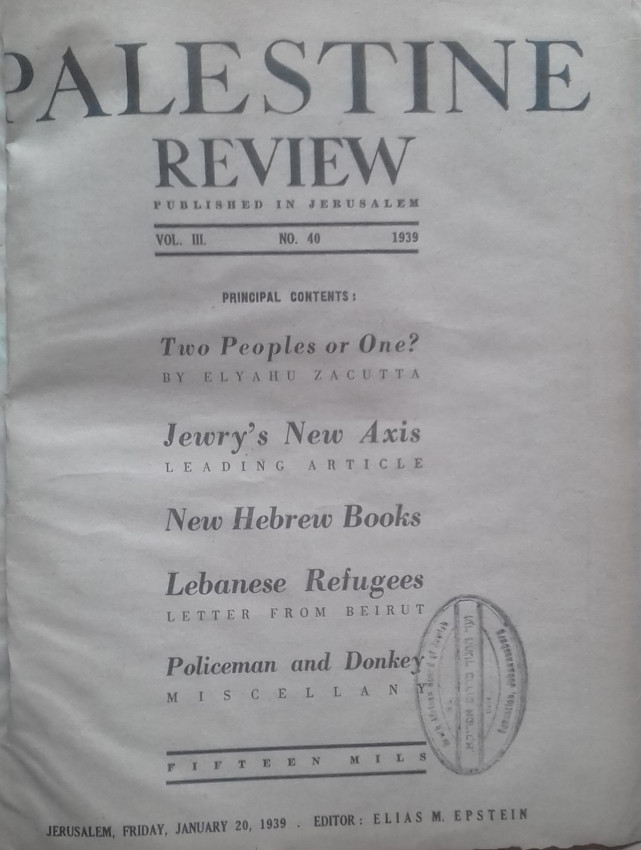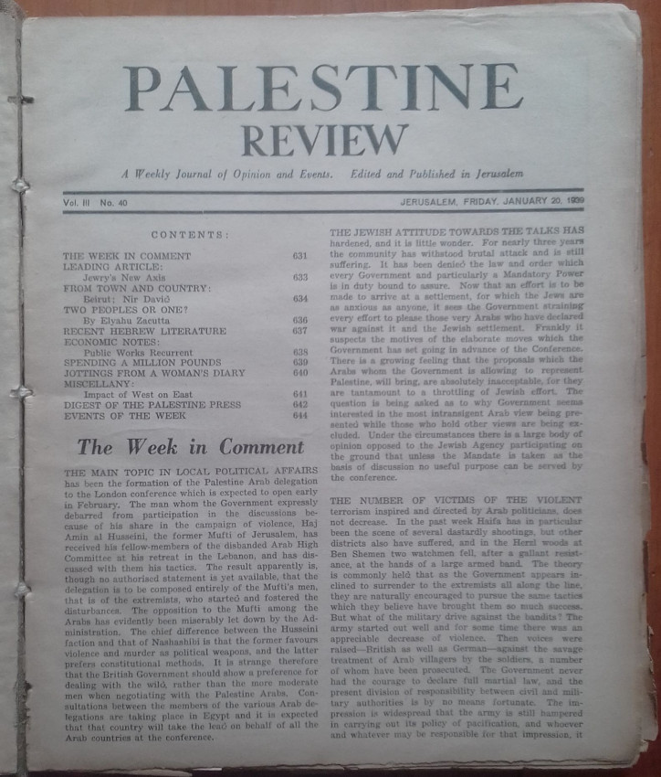 Various separate issues of the 'Palestine Review' from 1939-1942 brought together in a hardcover binding.