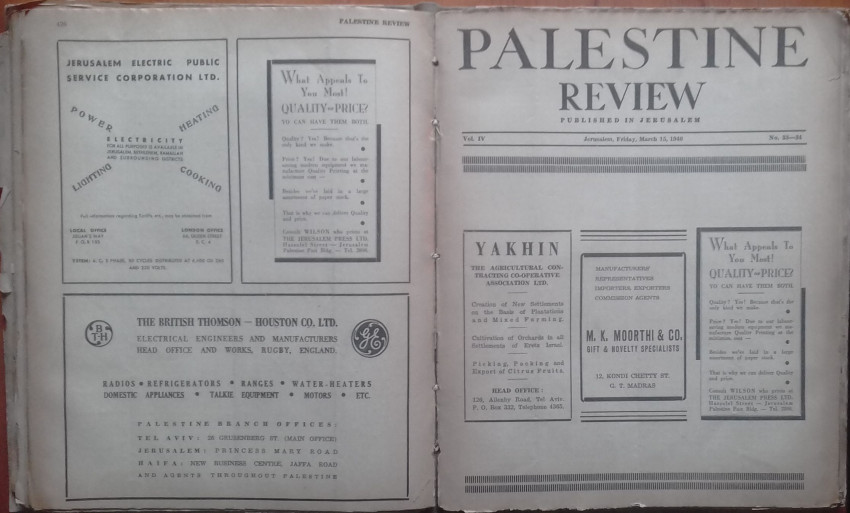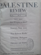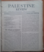 Various issues of the Palestine Review bound together in one volume. The issues are: Vol. 3, Nos. 40, 42, 44, 45, 46, 52, Vol. 4 Nos. 21/22, 28, 24-27, 29, 30, 31, 32, 33, 34, 35 Vol. 5 Nos. 1, 4, 5, 6, 8, 9, 10, 11, 14, 15. 24, Vol. 6, Nos. 17, 18.