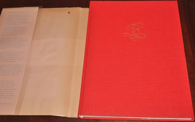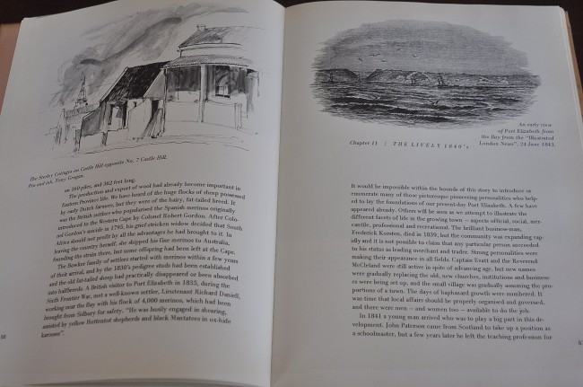 A large, attractive overview of Port Elizabeth - its history and personalities, and especially its architecture, with superbly reproduced illustrations by early painters such as Baines & Bowler, also Grogan. Pictorial unclipped dust jacket has wear, tear and soiling, now in protective plastic and still serviceable. Has shifted slightly on the binding but overall a very good, clean copy. Internally very good. 7 full-page colour plates, maps. Bibliog., chronology, Apps, Index. 196 pp.