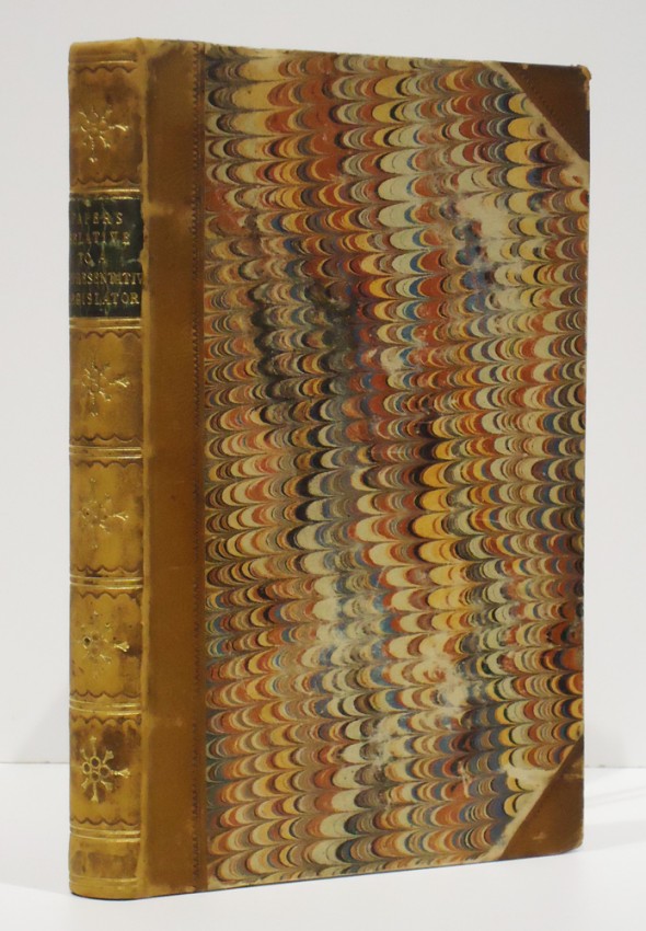 221 pages, bookplate on front paste down end paper, half leather with marbled boards, decorative gilt with black title label on the spine, a good copy.