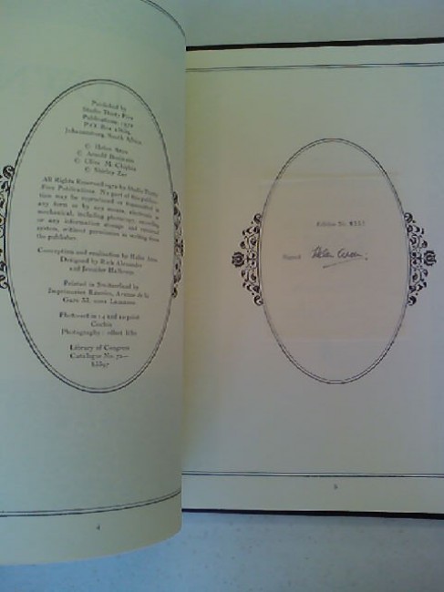 IMPERIAL QUARTO SIZE (30x40cm). SOFTCOVER. (113pp). South African architectural and historical study. Contains book and 51 loose (ready to frame) pages (83 photographs), housed in a solander box (flip-over lid). Limited Edition: Copy number 1351 of ? signed by Aron.