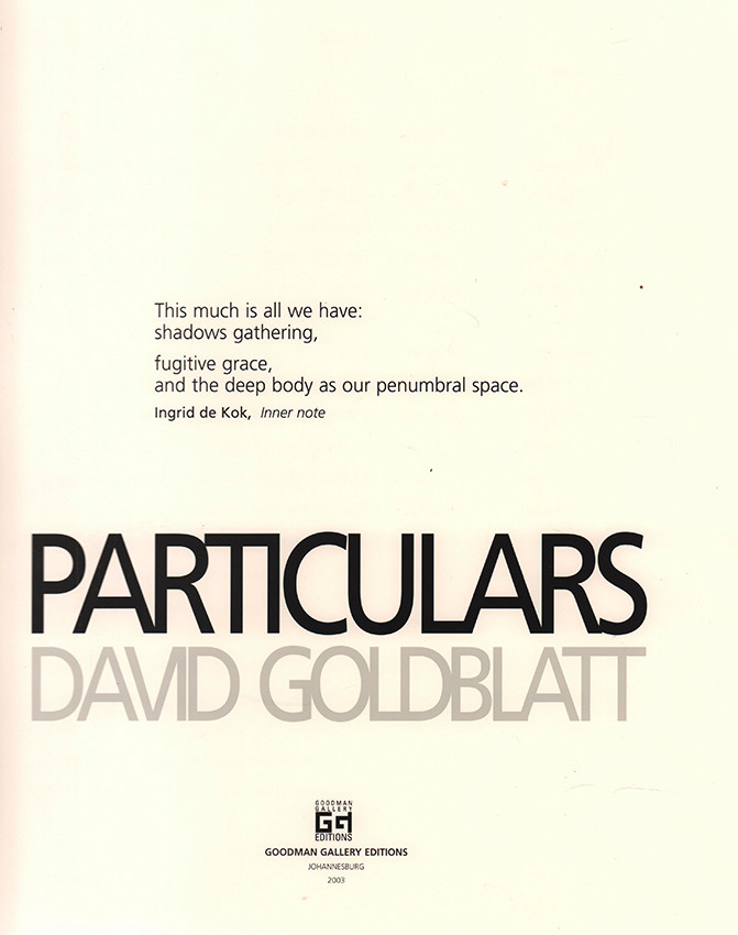 From the colophon: Introduction by David Goldblatt; edited by Mary Reynolds; design by Francois Smit and David Goldblatt. Five hundred copies of the book were printed.