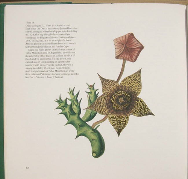 Original green cloth boards with a black title label on the spine with gilt titling. Original dust jacket. Dark green decorated end papers. 203 pages and profusely illustrated from Paterson\'s water-colour art collection in the Brenthurst Library.