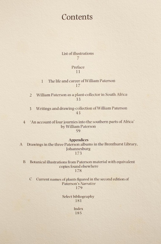 This is the first printing of Patterson's original manuscript account which he reworked into the short but reliable A Narrative of Four Journeys into the Country of the Hottentots and Caffraria (published in London, 1779). The imperfections in his manuscript were due to his deficiencies in education but were nevertheless made up for by his thoroughness and sharp observations. The document came to light in the middle of the 20th century and was acquired by Mr. H. Oppenheimer for the Brenthurst Library. This edition is annotated by geographer Vernon S. Forbes and botanist John Rourke. The Brenthurst Library already owned Patterson's picture album of over 300 colour sketches before their acquisition of the manuscript, and his full colour illustrations of plants, people, animals and scenery were used for this publication to enhance the overall presentation.