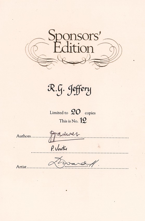 No 12 of a limited edition of 20 copies signed by the authors and the artist inscribed to R.G. Jeffery.