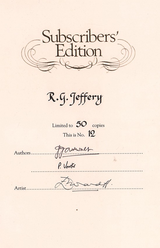 No 12 of a limited edition of 50 copies signed by the authors and the artist inscribed to R.G. Jeffery.