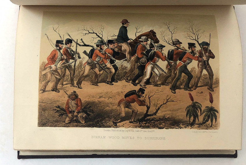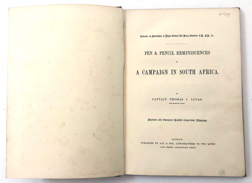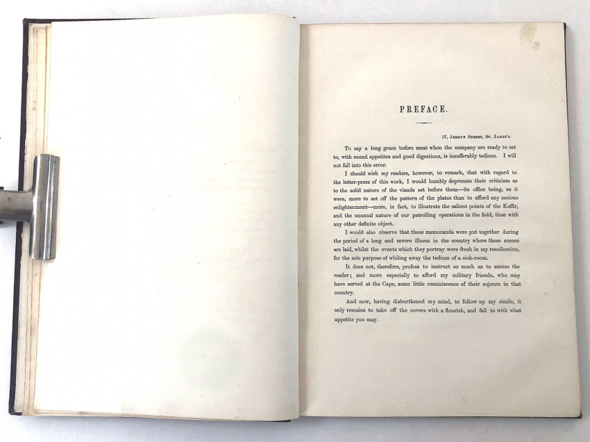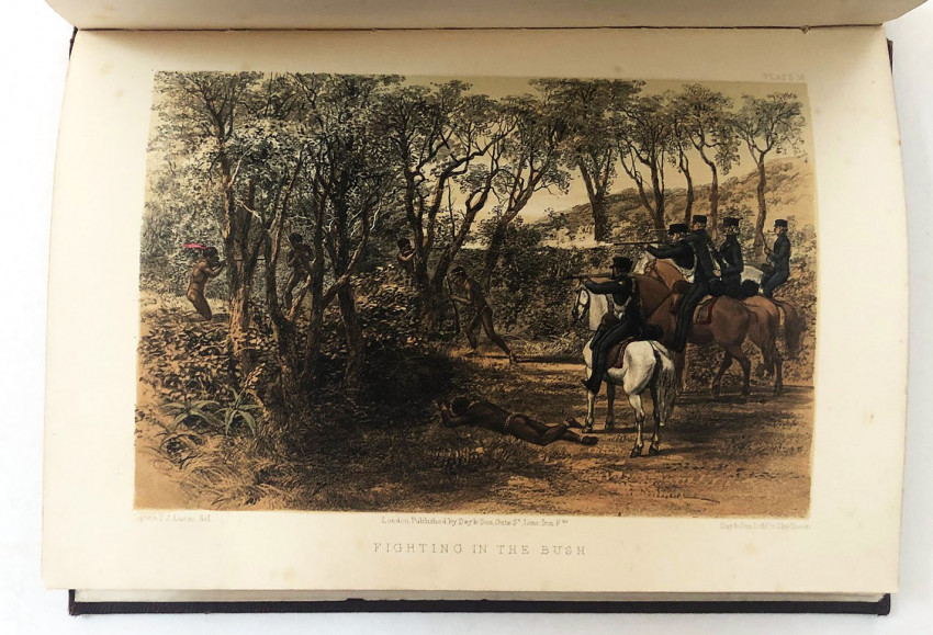 A far better than average copy of this title relating to the Border/K***** Wars, in the original blind and gilt decorated maroon cloth. The scarcer variant with the magnificent plates hand coloured. (The commoner variant has the original sepia tinted plates). The plates are complete, comprising the frontispiece, the coloured title page (in addition to the printed title) and nineteen other superb plates - all hand coloured. There are in addition 35 pages of letterpress text.