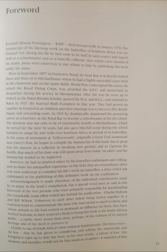- Three years in the making, this large and heavy book (quarto, 2.7 kg) is an edited version of Ken Pennington's manuscripts and images of his sixty years of Southern African butterfly fieldwork and research