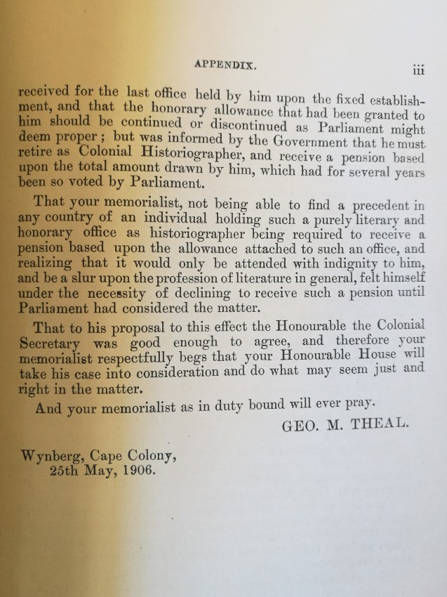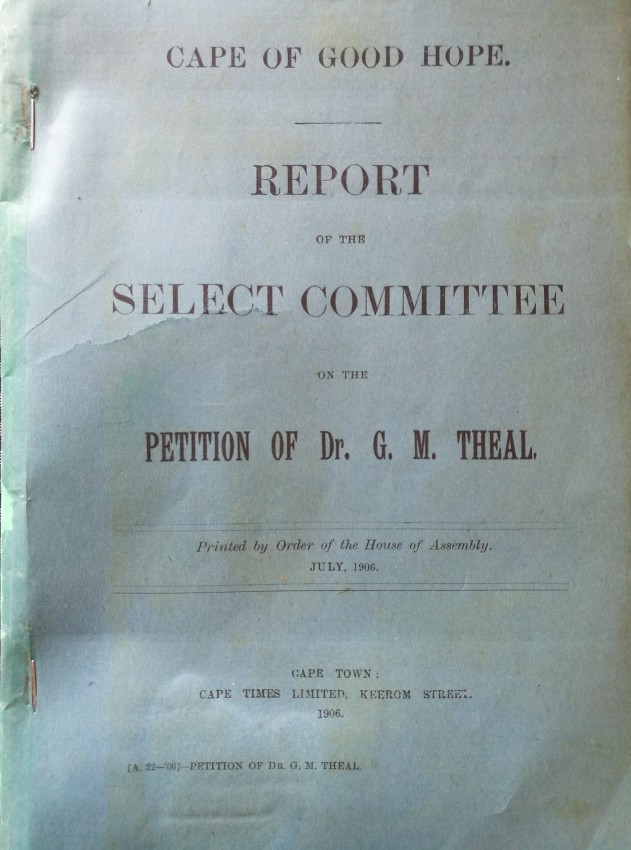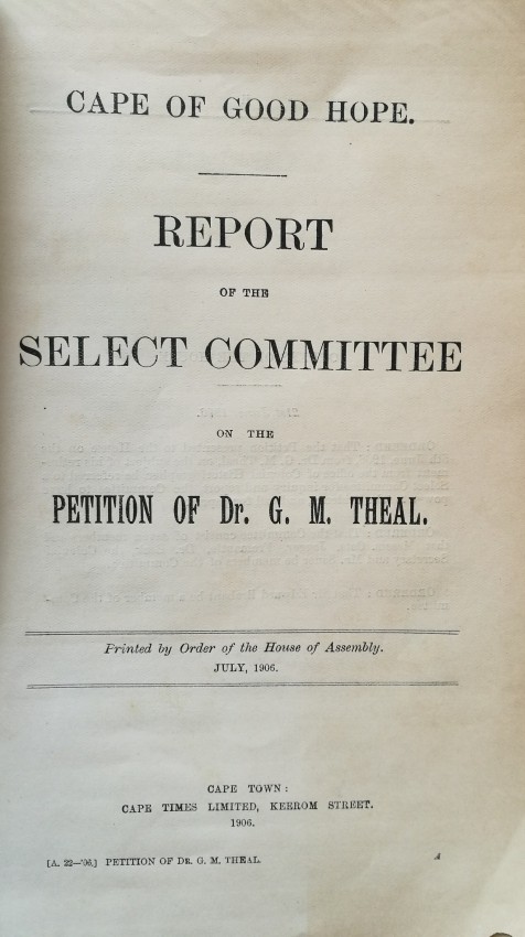 In evidence it came out that Theal made no money from the royalties from his books, which seems a sad outcome for South Africa's most famous historian and ethnographer of the late-19th and early-20th century.