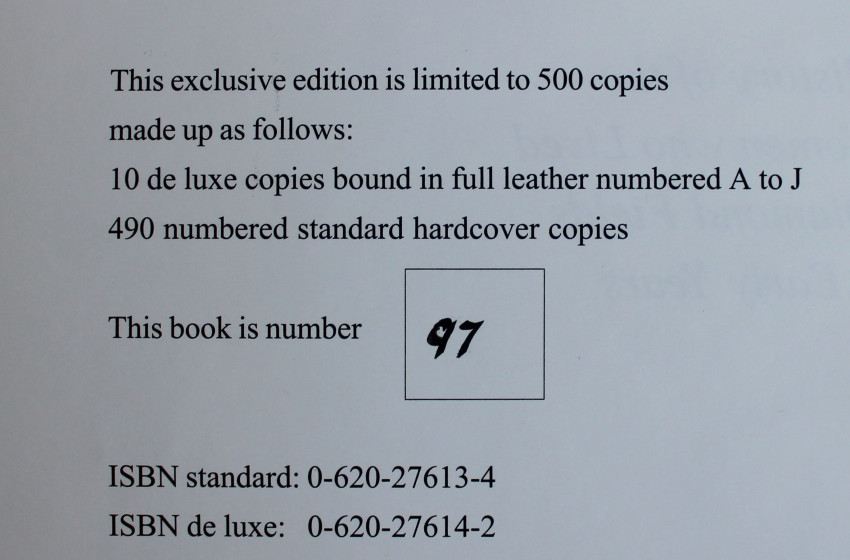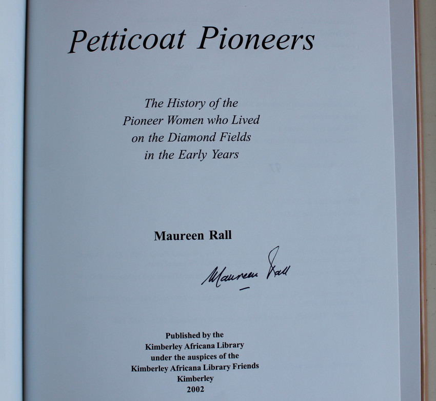 An edition limited to 500 numbered copies of which this is number 97. Pages 239. This book is in fine condition. This book celebrates the spirit of the women who shared in the shaping of this sudden city called Kimberley. Signed by Rall on title page.