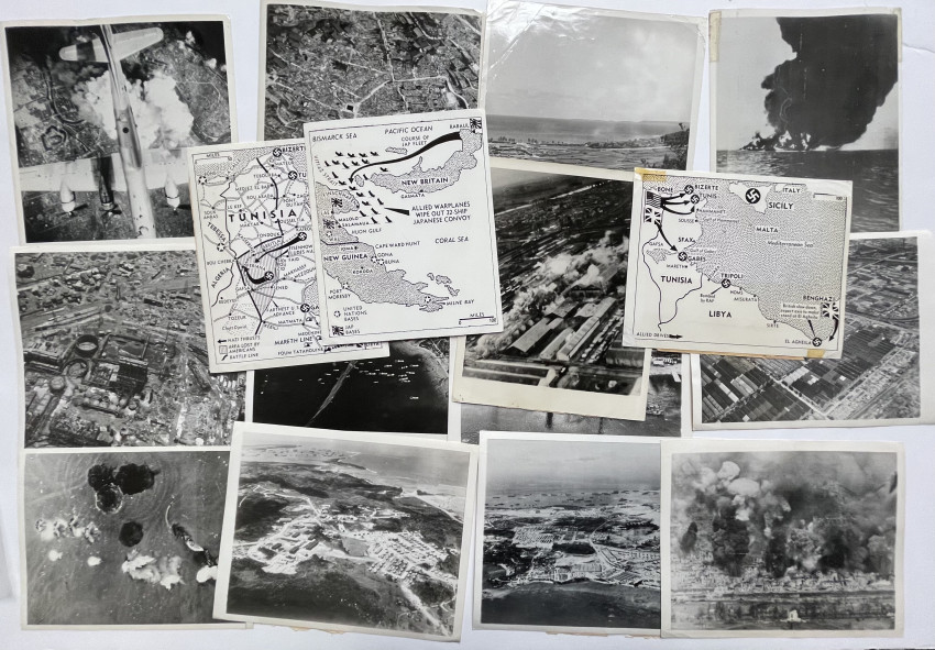 An extraordinary lot of news agency photographs depicting aerial views, bombings, targeting, and the like, offering a clear sense of the War as experienced from the air.