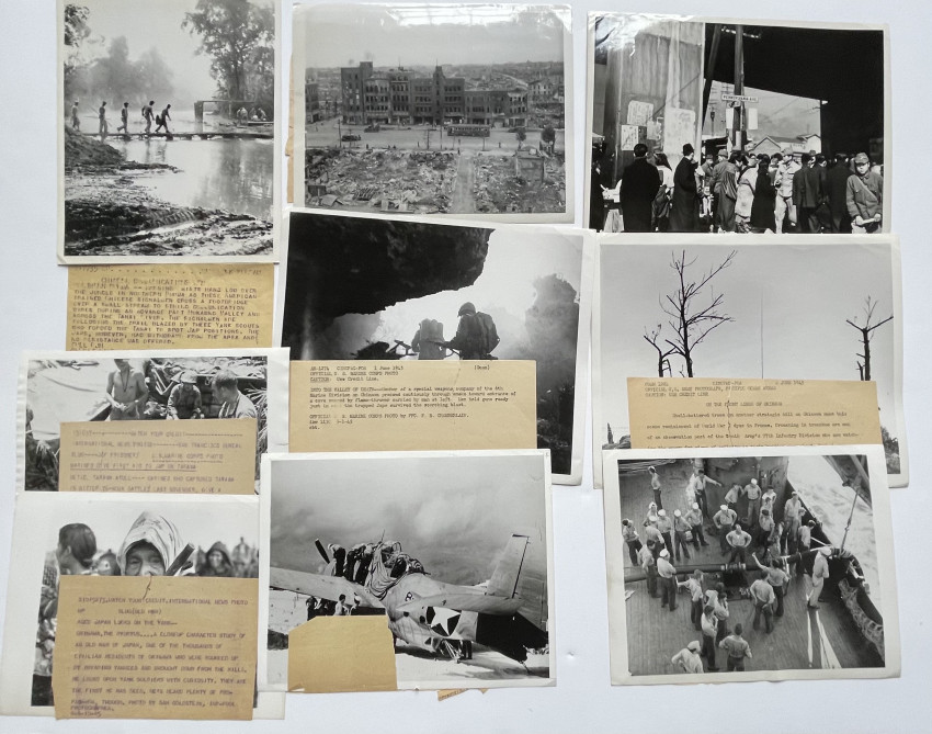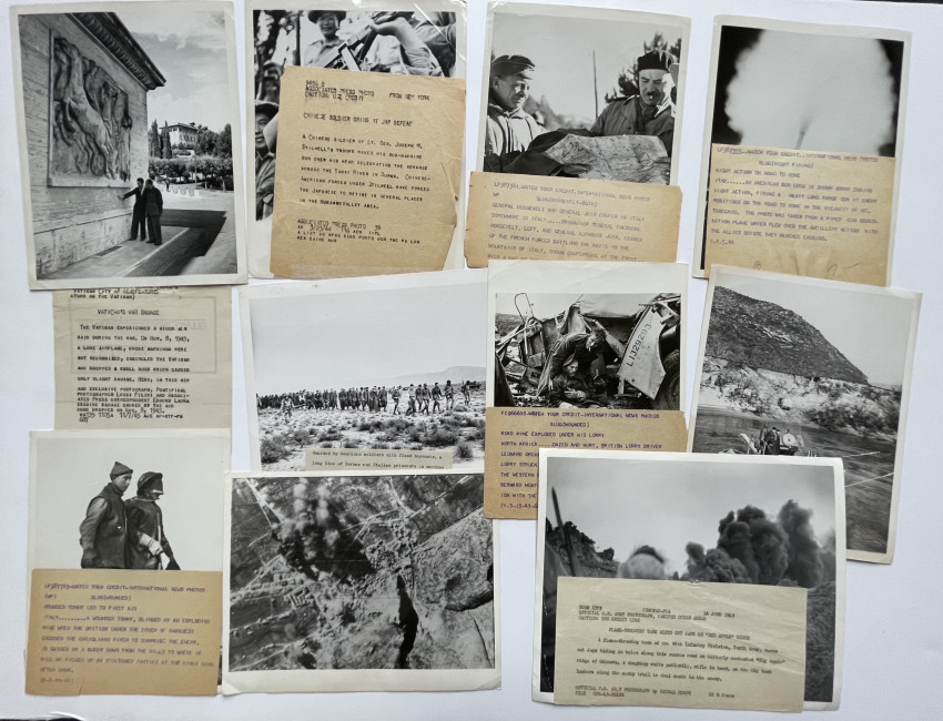 A fine collection of news photography documenting WWII as it played out in Asia and Africa, most stamped by various agencies and retaining paper caption slips. Minor wear.