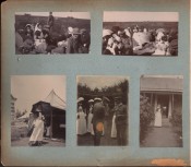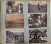 The album (250 x 300 mm) is of the usual type of half roan leather and cloth sides titled ‘Photographs’ on the upper cover with stiff card leaves on linen hinges. The binding is in poor condition; the spine is missing and the corners are worn. Some photographs are faded but most are in good condition.