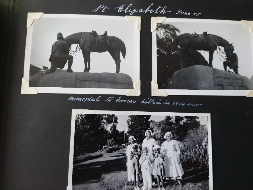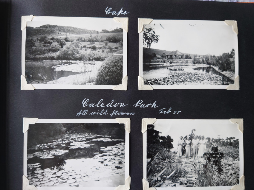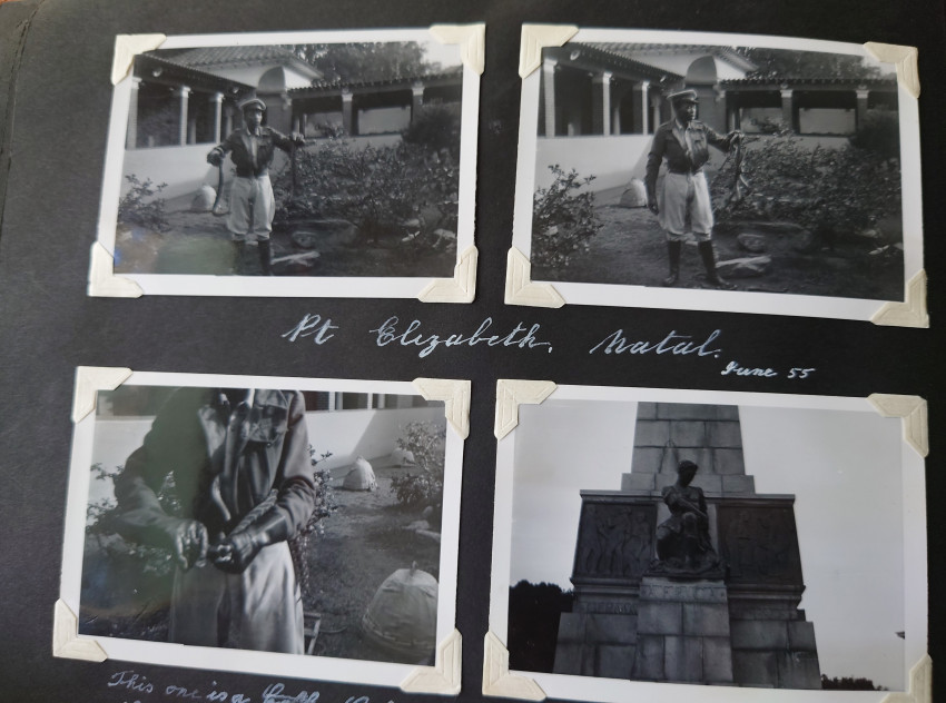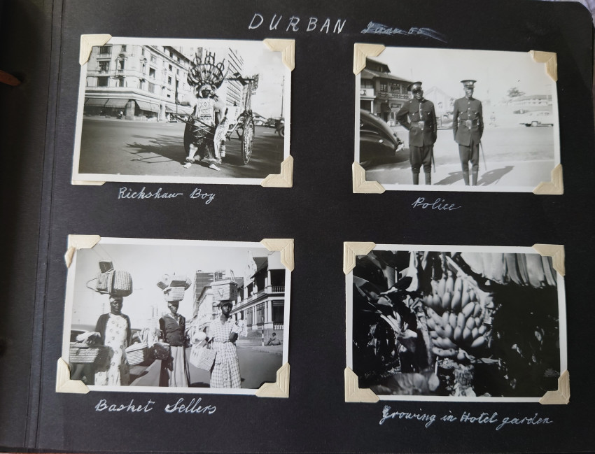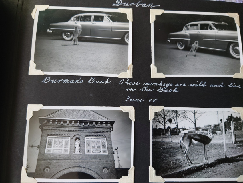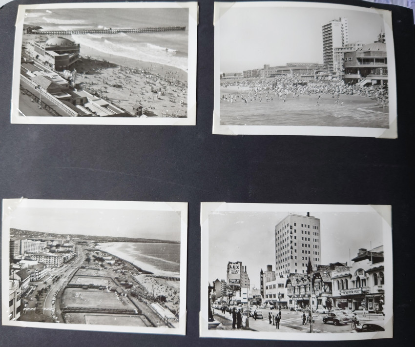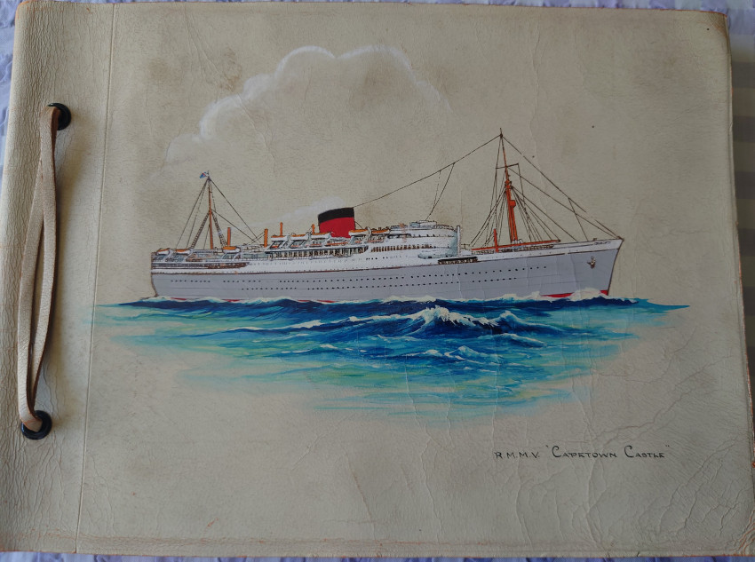 Cape Town/Durban. 1955. Small oblong album. Contains 100 black and white photos featuring scenes and events in the Cape ( Cape Town ) and Durban. Pictorial album with painting of RMMV Capetown Castle on the front cover. Leather string tie. Photo size 9cm x 6cm.
