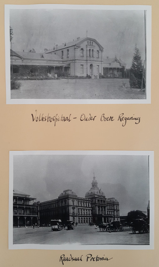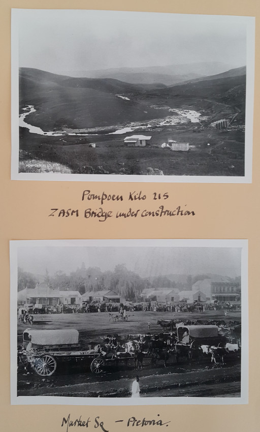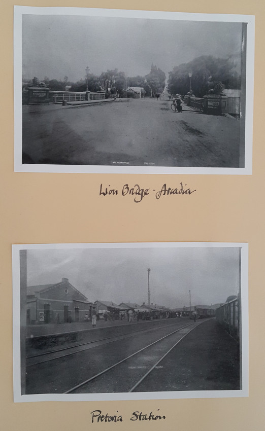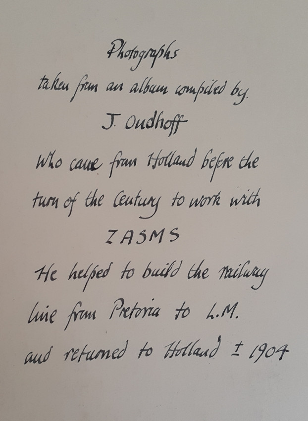 32 Photographs mainly of Pretoria around 1900. Mr. J. Oudhoff came from Holland to work with ZASMS, mainly on bridge building on the railway line from Pretoria to Lourenco Marques. He returned to Holland in 1904.