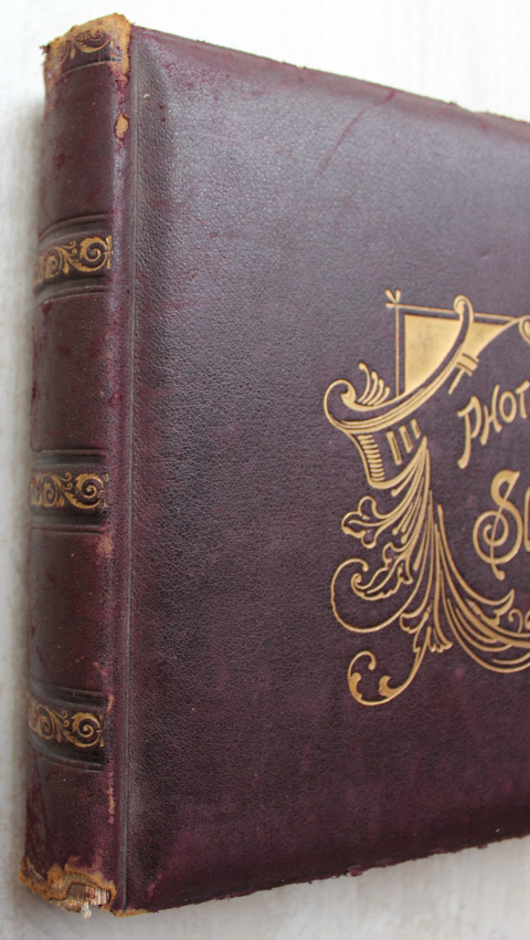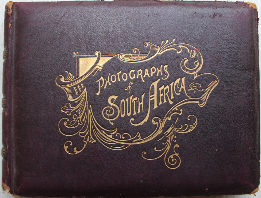 Photographs of South Africa comprising Representative Views. 199 Photographs. Dark brown full padded leather with gilt illustrated design with lettering to front board. Three raised bands with gilt decoration to spine. All edges gilded. External wear to all the leather cover edges. Small section of paper loss at the spine bottom. Oval bookplate of Robert Siff on fep. Pictures and content in good condition.