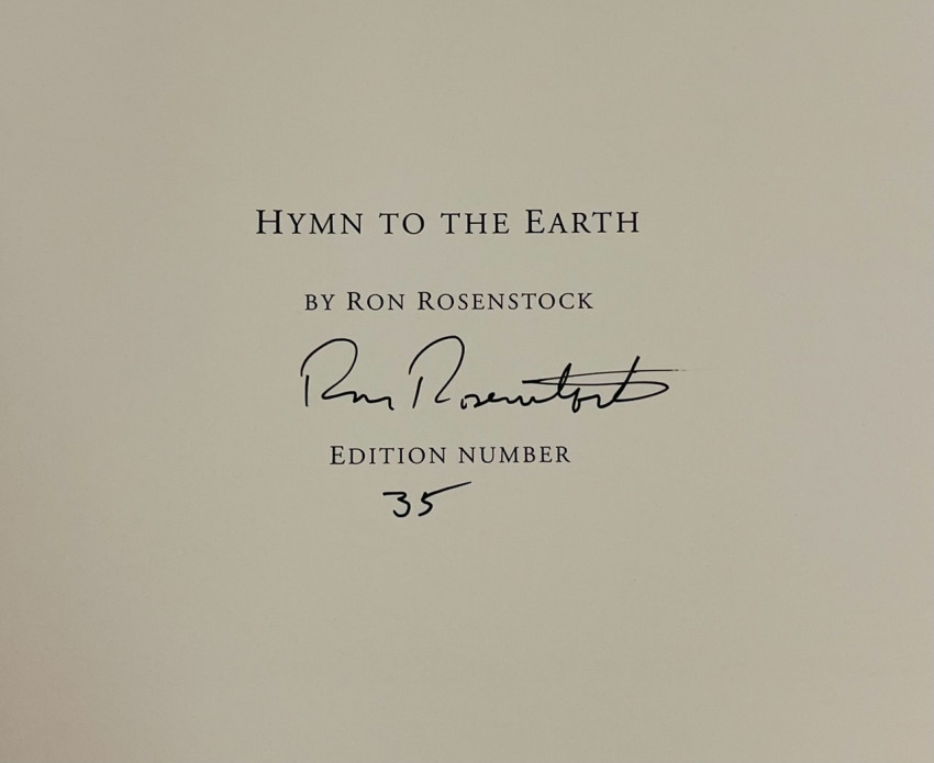 (WITH SIGNED PRINT). Hymn to the Earth. Holden, Mass.: Silver Strand Press, ( 2003); Signed and inscribed, edition number 35. VG/ VG. Light scuffing to jacket. Image titled “Homage to Money” in plastic sleeve, signed by Rosenstock, number 35/350.