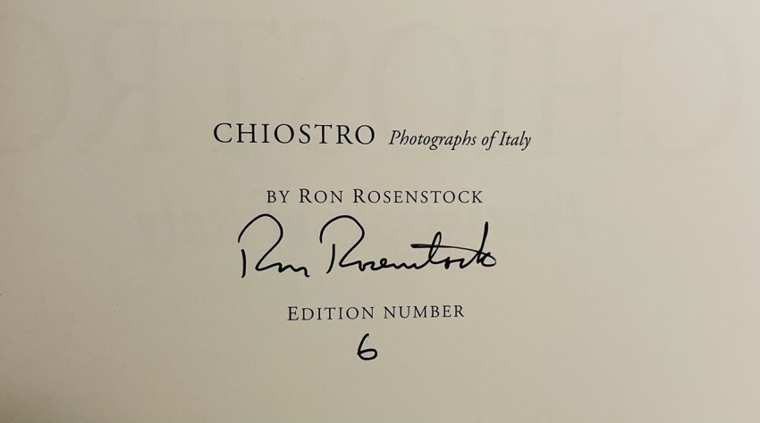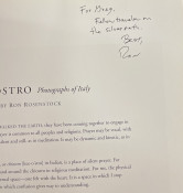 ROSENSTOCK, Ron. Chriostro: Photographs of Italy. (Holden, Mass.: Silver Strand Press, 2001); Signed and inscribed, edition number 6. VG/ VG. Light scuffing to jacket. — —.