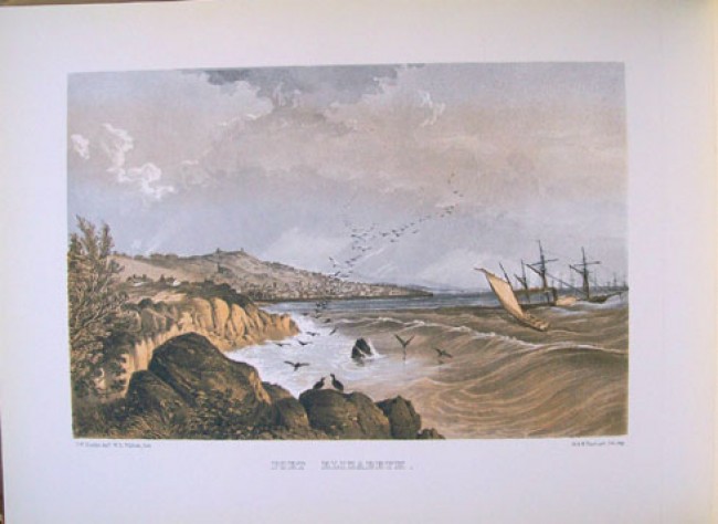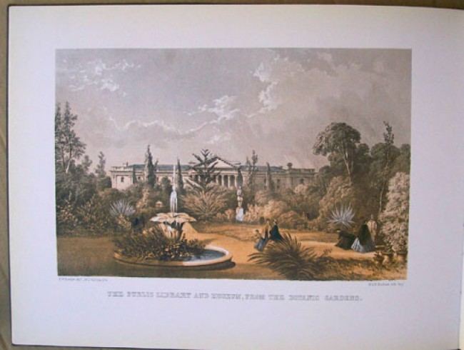 Original green cloth boards with gilt titling on the spine and the upper board. Green patterned end papers. 2 prelims, 44 pages of text, 12 colour plates, one of which folds out.