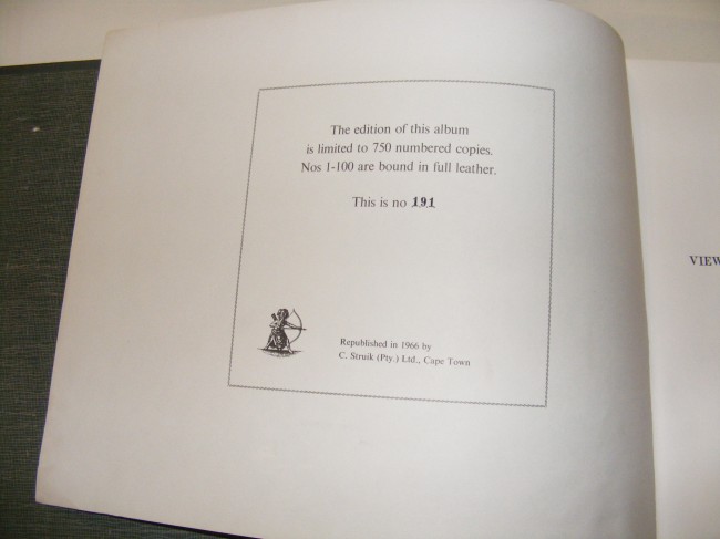 C. Struik Ltd., Cape Town,1966. Cloth, oblong folio. Book Condition: Fine. No Dust Jacket No. 191 of a numbered edition of 750. Reprint of the 1866 original JUTA edition. Struik at the time(1966)were Specialist Publishers of Africana.