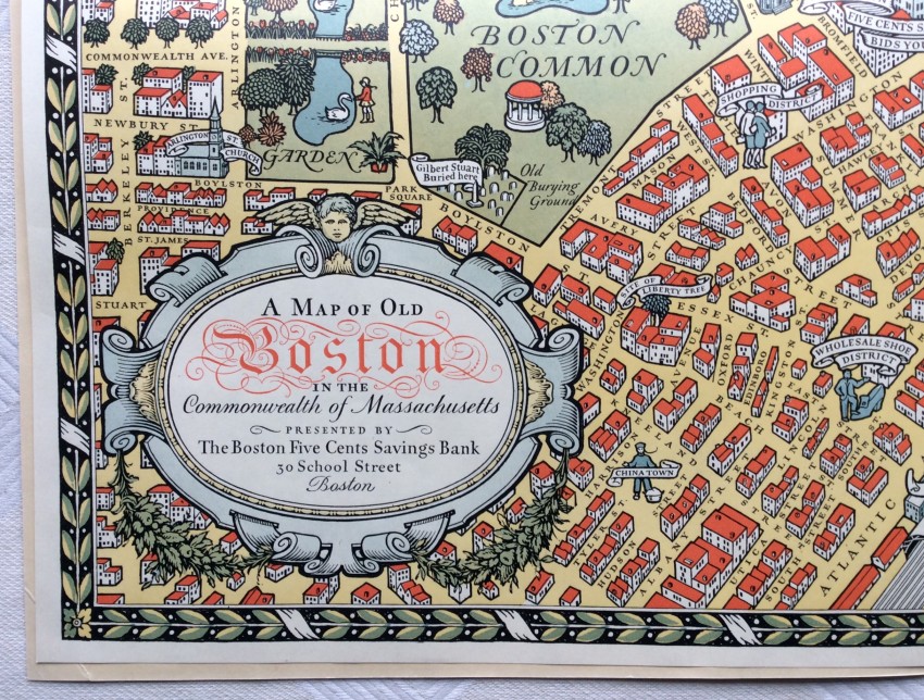 [Pictorial Map.] - A Map of Old Boston in the Commonwealth of Massachusetts presented by The Boston Five Cents Savings Bank