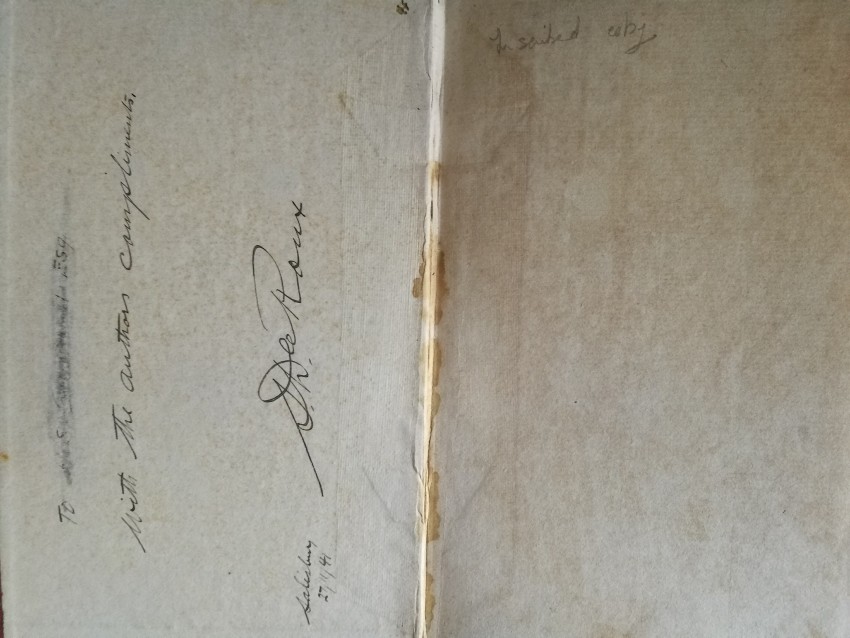 Ink dedication by the author, including "Salisbury 27/11/41" on front pastedown.